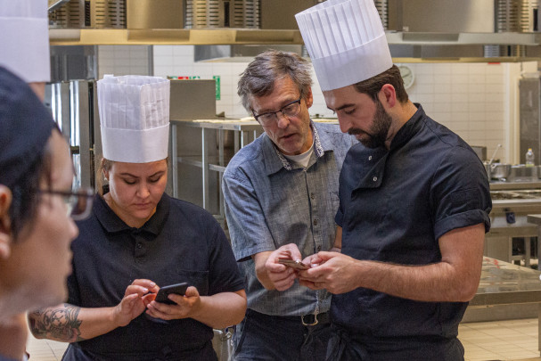 Tværfaglig Kopiark og PDF Hent alt som PDF Indhold med samme tema Smagsdidaktik (13) Aktiviteter i forløbet 1 App skal hjælpe kokkeelever med at sætte ord på smag 2 Kokkehåndværk møder gastrofysik: Smag og aroma, braisering og jævning i Kylling sauté Marengo 3 Smagskaravanen til søs: Sådan smager frisk fisk Forfattere: Eva Rymann Vertikale faneblade Aktivitet Hvordan forklarer man smagen af god mad? Datalog Morten Aagaard har udviklet en app, der kan hjælpe fødevarefaglige elever og deres lærere i at sætte ord på smagen. Artikel1Tekst og foto: Daniel Vendner Clausen, TechCollege "Den er rigtig god, synes jeg. Masser af umami og en smule bitterhed, der gør, at den smager… voksent. Hvad synes du?" Morten Aagaard rækker en ske og inviterer hen til en gryde fyldt med sovs. Umamien er der i sandhed masser af. Også lidt bitterhed. Men mest sødme. I hvert fald smagt med smagsløg, der er vant til både tobaksrøg og anseelige mængder kaffe. "Det er jo præcis det! Vi smager det forskelligt. Men hvordan kan vi øve os i sætte ord på smag, og hvordan kan vi lære at smage på andres vegne? Smag kan man jo ikke undervise i. Det skal trænes." I appen giver hver elev og faglærer sin vurdering af balancen mellem grundsmagene. Foto: Kokkeeleverne kan med app'en give en vurdering af smagen. Foto: Daniel Vendner Clausen I appen giver hver elev og faglærer sin vurdering af balancen mellem grundsmagene. Foto: Kokkeeleverne kan med app'en give en vurdering af smagen. Foto: Daniel Vendner Clausen Morten Aagaard er næsten overstadig. I sin hånd holder han sin telefon. Skærmen viser en orange baggrund med et femkantet diagram. Hver spids repræsenterer en af de fem grundsmage, og med sin finger rangerer han sovsen. Meget umami, meget bitterhed. Også en god portion syrlighed, mens både salt og sødme rangeres lidt lavere. "Det er jo stadig min personlige vurdering. Og jeg er jo ikke kok." Ja, hvordan kan man sætte ord på noget så individuelt som smag? Hvis du er vant til at fylde din lasagne med chili, synes du måske ikke, at en burrito på tankstationen er lige så stærk som en, der aldrig spiser krydret mad, vil synes. Det er der i og for sig ikke noget nyt i. Men det kan være et problem, hvis du gerne vil være eksempelvis kok. For med en individuel smag, hvordan kan du så træne dig selv i at smage mad til på andres vegne? Morten Aagard er, som han pointerer, ikke kok. Nej, han er datalog og tilknyttet Aalborg Universitet. Han er altså ret optaget af, hvordan vi kan bruge data til at udvikle alskens ting. Også gastronomien. Derfor kom han på grundidéen til den app, der dominerer telefonens skærm. "Så skrev jeg en mail med titlen ”Besynderligt samarbejdstilbud” til Simon og spurgte, om han synes, det var helt åndssvagt, det, jeg her var kommet på. Heldigvis kunne han godt se idéen." ‘Simon’ er Simon Sørensen. Faglærer på gastronomuddannelsen på TechCollege og samtidig en del af centerledelsen i Smag for Livet. Og han var helt med på idéen. Eleverne arbejder med at beskrive den "voksne smag" af sovsen. Foto: Daniel Vendner Clausen Eleverne arbejder med at beskrive den "voksne smag" af sovsen. Foto: Daniel Vendner Clausen "Smag er noget af det mest vanskelige at undervise i, fordi det kan være svært at sætte ord på. Hvordan forklarer du, hvad sødme er? Vi kan godt smage, hvis noget er sødt, men hvordan forklarer man det? På den måde er der rigtigt meget tavs viden, når det kommer til smag," fortæller Simon Sørensen. Et godt eksempel er Morten Aagaards eget forsøg få minutter før på at forklare effekten af bitterhed som “en voksen smag”. Det er den tavse viden, som app’en forhåbentligt kan være med til at gøre eleverne bedre til at sætte ord på - og relatere til. Eleverne kan nu se et gennemsnit af alle smagsvurderinger af sovsen. Foto: Daniel Vendner Clausen Eleverne kan nu se et gennemsnit af alle smagsvurderinger af sovsen. Foto: Daniel Vendner Clausen Eleverne, der er med i dette første undervisningsforløb med app’en, skal smage og vurdere hinandens mad - i dette tilfælde en sovs. Når hele holdet har afgivet sin mening, viser app’en en gennemsnitlig vurdering, som eleverne så kan holde deres egen vurdering op imod. Samtidig vurderer også underviseren - Simon Sørensen - maden, og hans vurdering kan eleverne også se sammen med gennemsnittet for resten af holdet. "Det er et godt udgangspunkt for at finde forskelle i smagsoplevelserne - og for at vi kan tale om det. Jeg kan som underviser hurtigt afkode elevernes smagsoplevelse, og de kan se, hvor deres afviger fra min, og så har vi det som udgangspunkt i en samtale," som Simon Sørensen fortæller det. En af de elever, der har været med i undervisningsforløbet med det nye smagsværktøj, er Nicolai Berntsen. Han var blandt andet med til at lave den sovs, som Morten Aagaard forsøgte at sætte ord på lidt tidligere. "Det er lidt underligt, for som kok er du jo vant til at arbejde under pres og at folk hele tiden bedømmer dig. Men det er alligevel næsten nervepirrende, når hele holdet på den måde skal vurdere det mad, man laver. Det er jo meget normalt, at vi smager hinandens - men det er lidt noget andet, når man sådan næsten skal give en karakter," fortæller Nicolai Berntsen, efter den voksne sovs har været en tur igennem den fælles vurdering. "Jeg blev faktisk lidt overrasket over, at de synes, at den var så syrlig, for vi gik efter fuld smæk på umamien. Men det kan godt være, at vi lige fik revet for meget citronskal i." Fik vi revet for meget citronskal i? App'en indikerer, at mange kan smage en markant syrlighed i sovsen. Foto: Daniel Vendner Clausen Fik vi revet for meget citronskal i? App'en indikerer, at mange kan smage en markant syrlighed i sovsen. Foto: Daniel Vendner Clausen Efter det nervepirrende lige har lagt sig, så er Nicolai Berntsen dog overbevist om, at app’en er en fremragende idé at gøre brug af. "Det er ret fedt 
