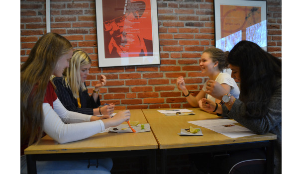 Gastronauterne i 2y gennemfører lige nu et danskfagligt forløb om smagens betydning i litteraturen og livet, som særligt træner eleverne i at skrive reflekterende artikler. Undervisningen kombinerer skriftlige øvelser og analyseopgaver med konkrete smagsoplevelser, som både aktiverer elevernes sanseapparat og trækker på deres personlige erfaringer med smag. 2y-eleverne læser, skriver og diskuterer derfor ikke kun i timerne; de tygger, snuser, gurgler og holder sig til tider også for næsen, når de har dansk.