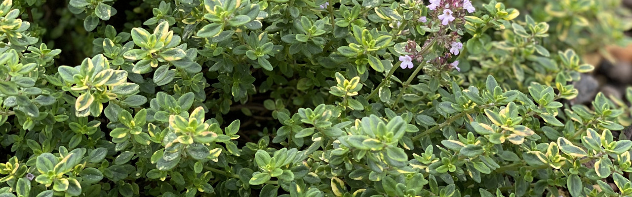 Citrontimian er i læbeblomstfamilien. Citrontimian er en flerårig plante med blanke, grønne diamantformede blade og bleg lilla-lyserøde blomster om foråret/sommeren.