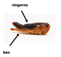 - Fjern græshoppernes vinger og ben. Vingerne sidder lige bag hovedet.